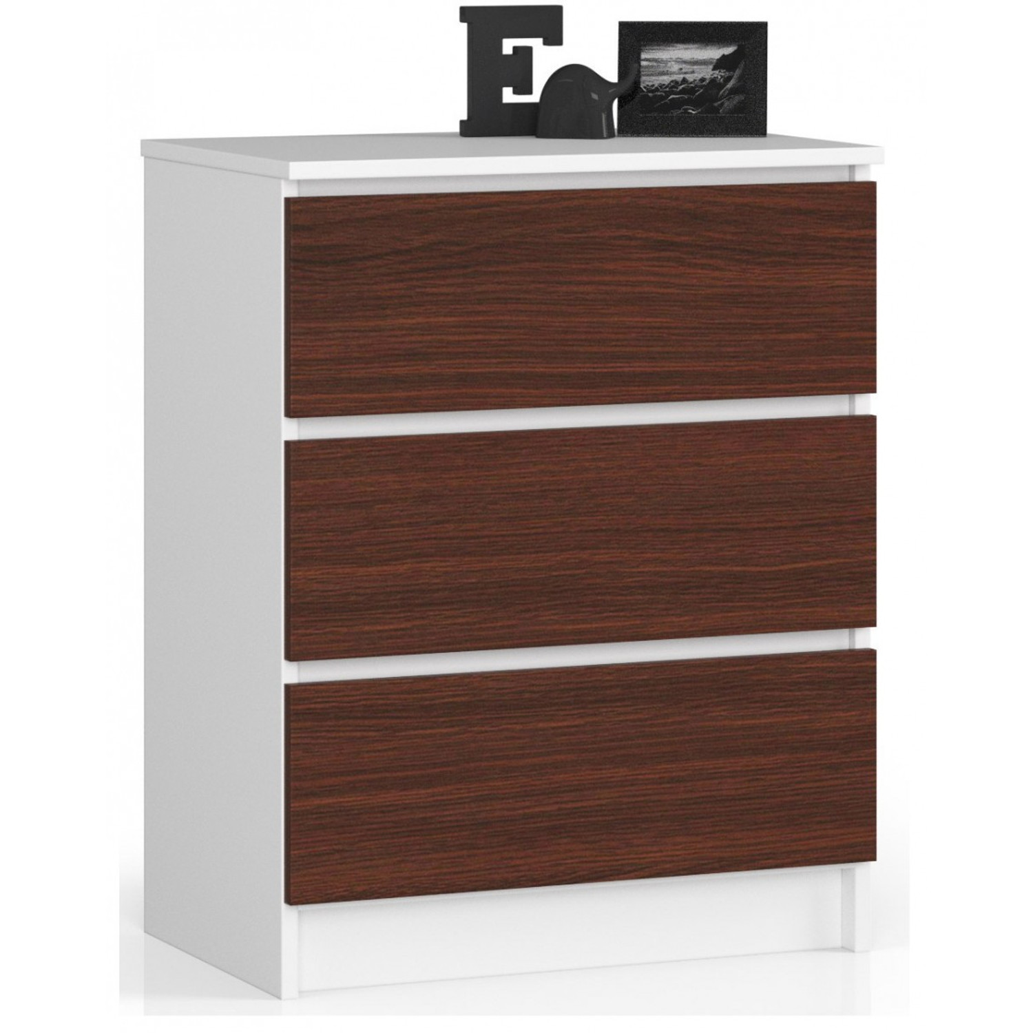 Veľmi žiadaný produkt, Komoda K60 3SZ - biela/wenge od firmy Akord výhodne za 126 EUR €. Zobraziť celý popis »