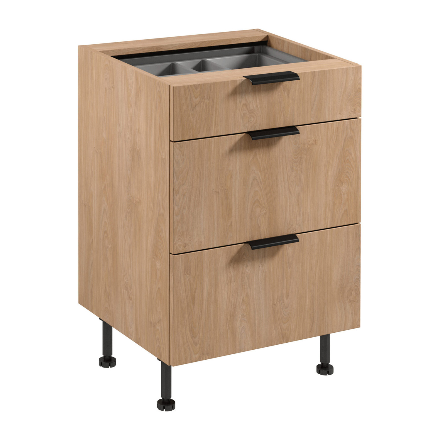 Kuchynská skrinka SORENTO D60S3 AX - Puccini. Každý si chce zariadit kuchyňu tak, aby bola funkčná a zároveň príjemná na pohľad. K tomu určite pomôže nábytok z kolekcie Sorento. Predstavujeme jeden z prvkov z tejto modulárnej zostavy - kuchynskú skrinku SORENTO D60S3 AX. Vyznačuje sa univerzálnym dizajnom a vysokou kvalitou. Jedna zásuvka má vložku na príbory. - spôsob otvárania je formou kovovej rukoväte s dĺžkou 15 cm - tlmené zatváranie - použitie kvalitných materiálov - zaujímavé prevedenie - jednoduchá montáž Údržba: Povrch nábytku utrite do čista mäkkou handričkou. Vyhnite sa použitiu chemikálií. Čakáme, že táto ponuka sa zaradí medzi bestsellery. Lepšiu ponuku už na trhu hľadať nemusíte.