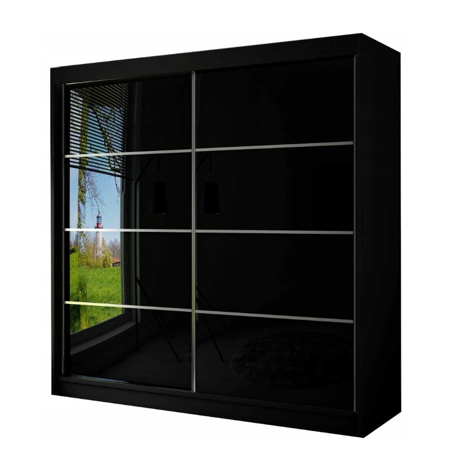 Popis produktu Kvalitná Šatníková Skriňa Peak III 250 cm Biela Čierny mat