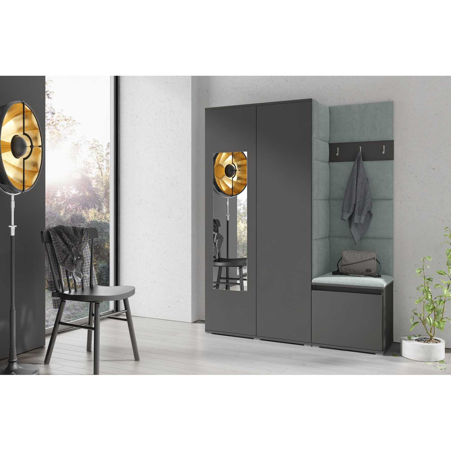 Predsieňová stena EMI 11 Mätová Grafit So zrkadlom