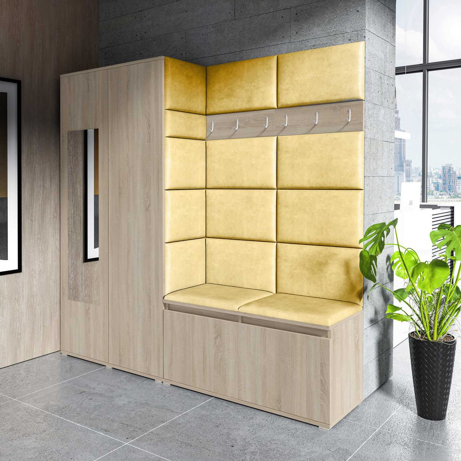 Popis produktu Predsieňová stena AMI 8 Žltá Dub sonoma So zrkadlom