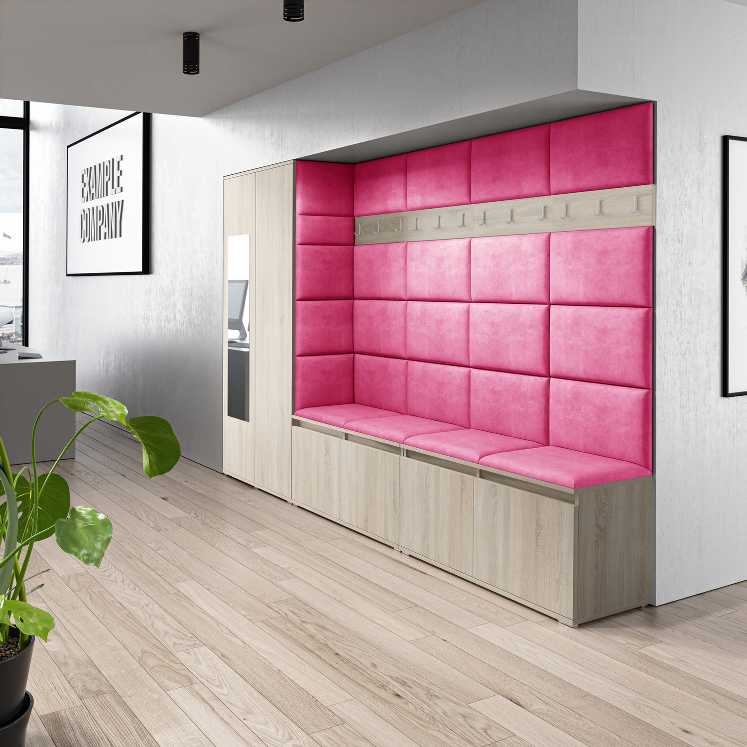 Popis produktu Predsieňová stena AMI 9 Ružová Dub sonoma So zrkadlom