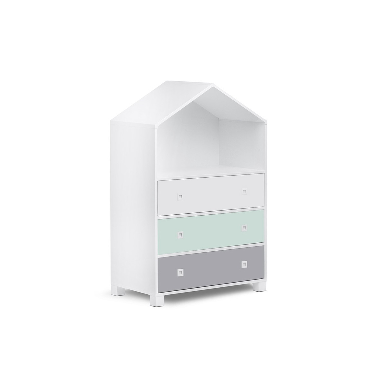 Popis produktu Regál domček MIRUM - biela/mätová