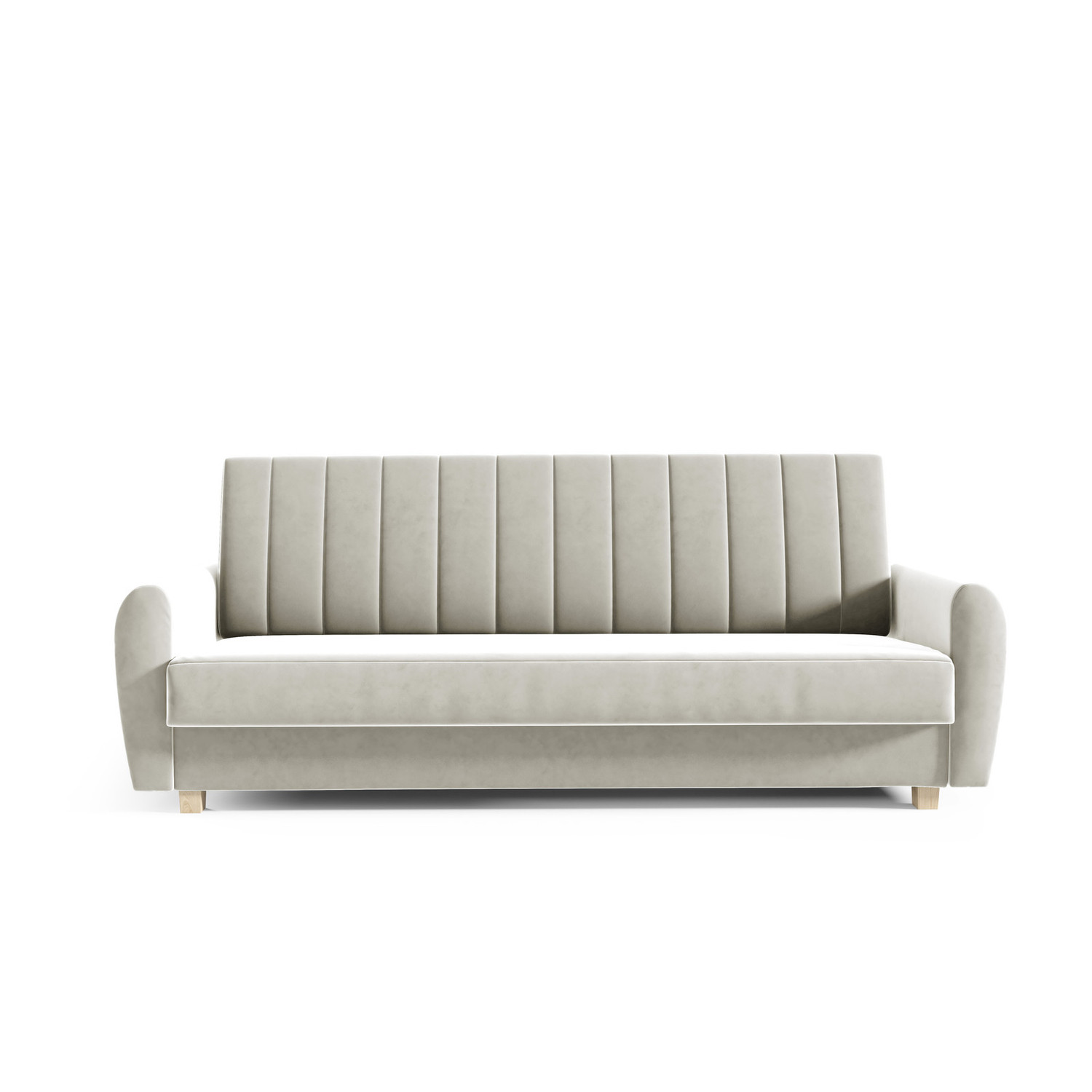 Rozkladacia pohovka BELLA. Pevná konštrukcia z dreva a OSB dosiek. Potah z kvalitnej látky Kronos. Jednoduché rozkladanie pohovky na lôžkovú podobu. Moderný škandinávsky dizajn vhodný do všetkých súčasných interiérov. Súčastou pohovky je úložný priestor. Výplň: Kvalitná PUR pena, veľmi pohodlná vďaka odpruženiu Bonnel. Potah: Tkanina Kronos je vyrobená zo 100% polyesteru.Radíme ju medzi plyšové tkaniny. Na dotyk je jemná, hladká a mäkká. Látka nežmolkuje. Látka sa na pohľad ľahko leskne, čo je pre ňu typické. Tkanina Paros je vyrobená zo 100% polyesteru, je veľmi jemná a hebká na dotyk. Vďaka svojim vlastnostiam sa radí medzi zamatové látky. Jemná štruktúra látky je dostatočne pevná.Ponúkame vo farbe - béžová, šedá. Údržba: Odporúčame čistit iba jemnou hubkou. Nebielte, mohlo by dôjst k poškodeniu vlákien. Výhodné ceny máme pre všetkých zákazníkov. Už sa tešíte na svoju objednávku?