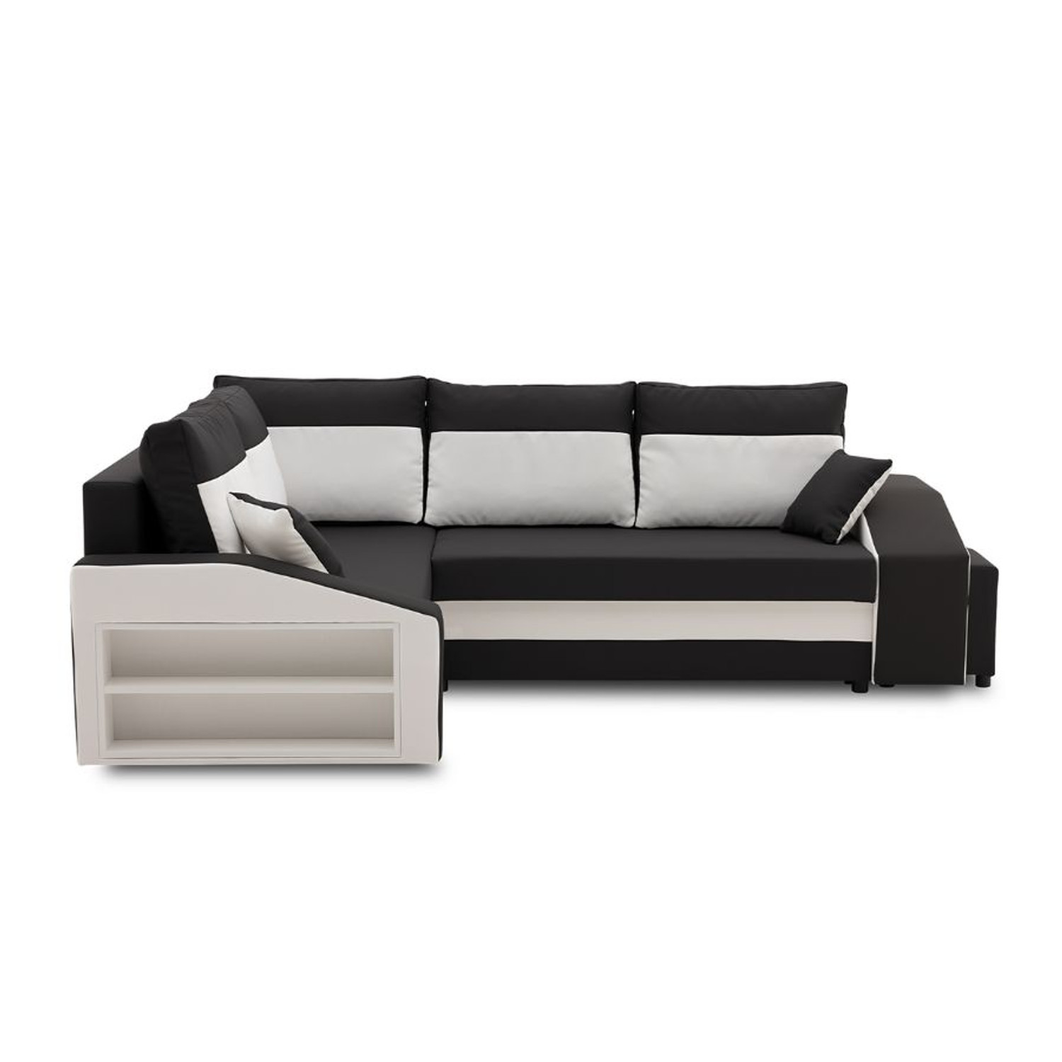 Popis produktu Rozkladacia rohová sedacia súprava GRANDE s taburetkami a poličkou model 2
