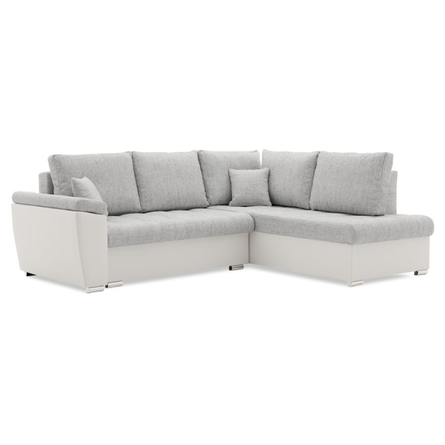 Popis produktu Rozkladacia rohová sedacia súprava VEGAS 245/190 Svetlo sivá/biela eko-koža Pravá