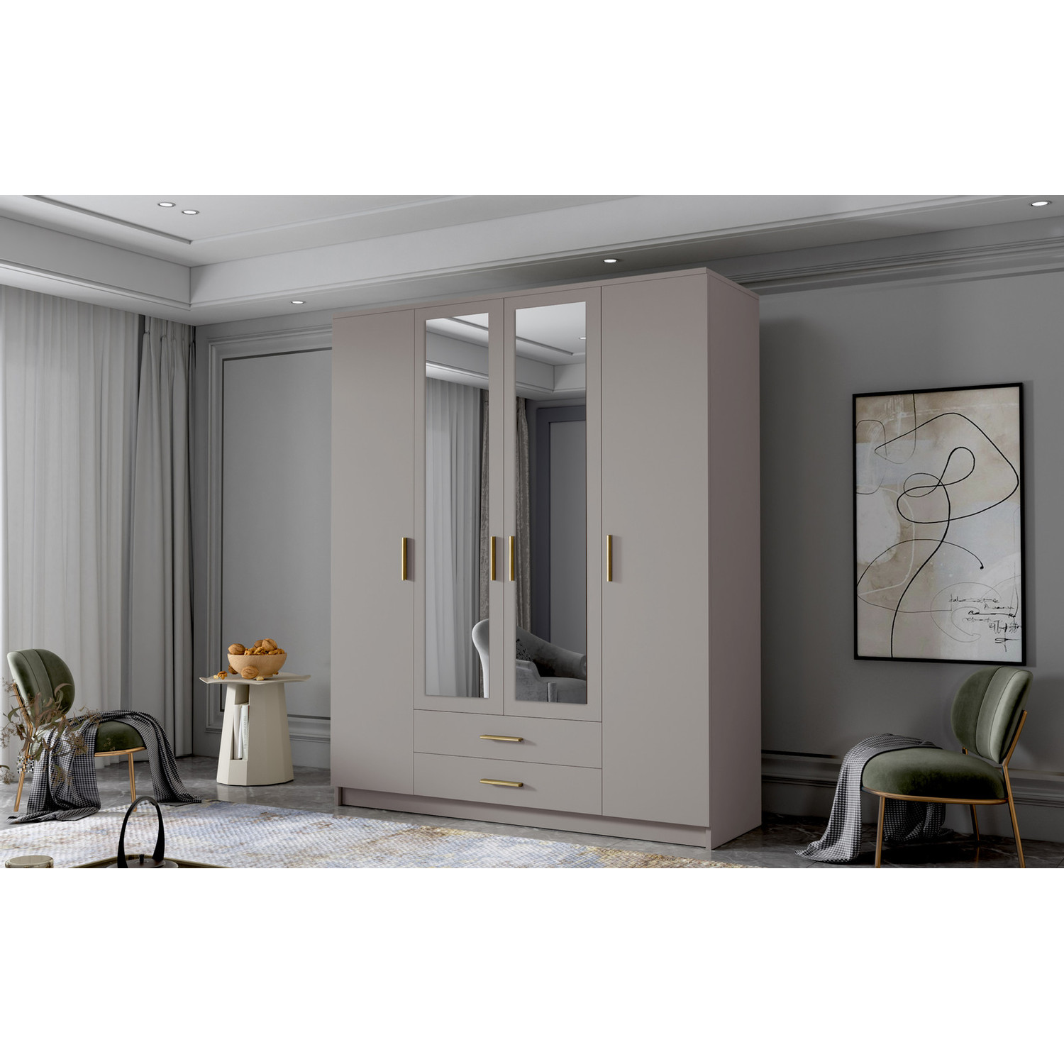 Popis produktu Šatníková skriňa ADA II 160 cm - béžová/zlaté úchytky