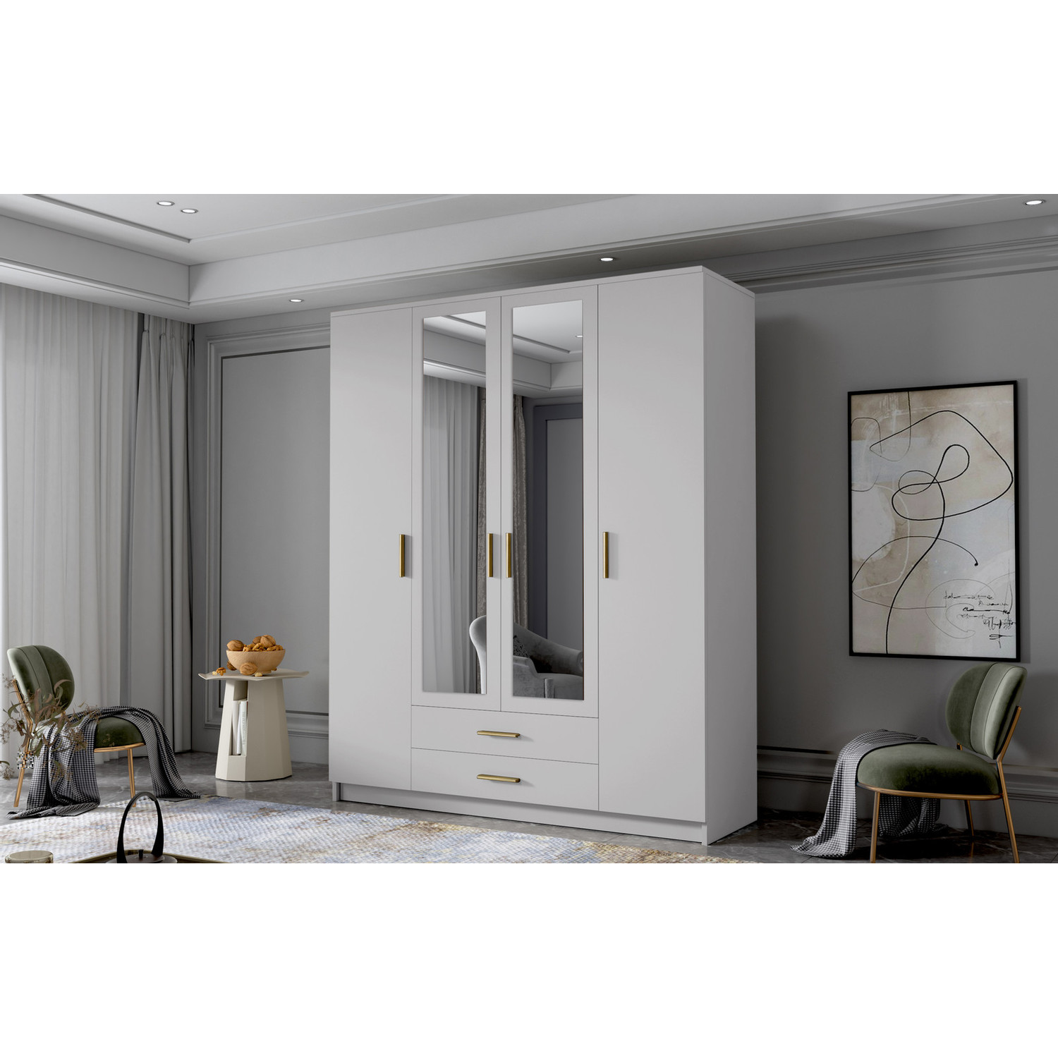 Popis produktu Šatníková skriňa ADA II 160 cm - biela / zlaté úchytky