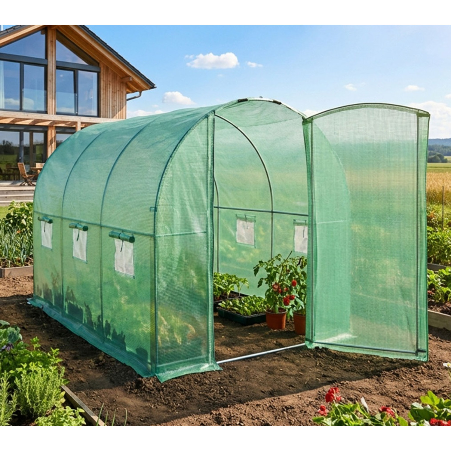 Záhradný fóliový tunel s kovovými dverami, zelený, 200x300x200 cm od preslávenej značky Akord - tento produkt predávame za príjemnú cenu 194 EUR. U nás nakúpite vždy kvalitný tovar za bombastické ceny. Stačí naplniť košík tovarom nadA dopravu NEPLATÍTE. Naše heslo: kvalita, výhodná cena, prozákaznícky prístup.